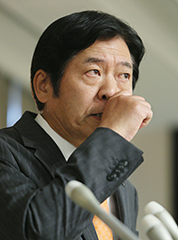 特別損失の計上について記者会見するLIXILの藤森義明社長(6月3日)